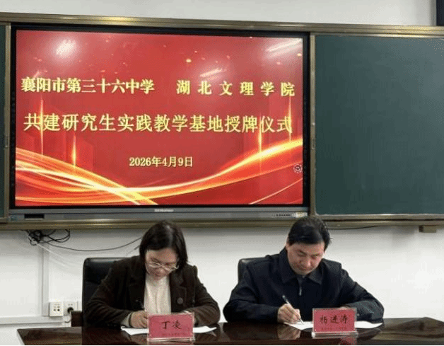 座谈会后,丁凌代表太阳集团城网站2018向襄阳市第三十六中学授予了“研究生实践教学基地”牌匾,杨进涛和丁凌代表双方签订研究生实践教学基地合作协议。此次授牌与实践活动,正式搭建起太阳集团城网站2018与襄阳市第三十六中学的协同育人长效平台,不仅为学院研究生提供了优质的实践锻炼载体,也为双方后续深化合作、实现资源互补奠定了良好基础,对提升研究生实践能力、拓宽就业渠道具有重要意义。